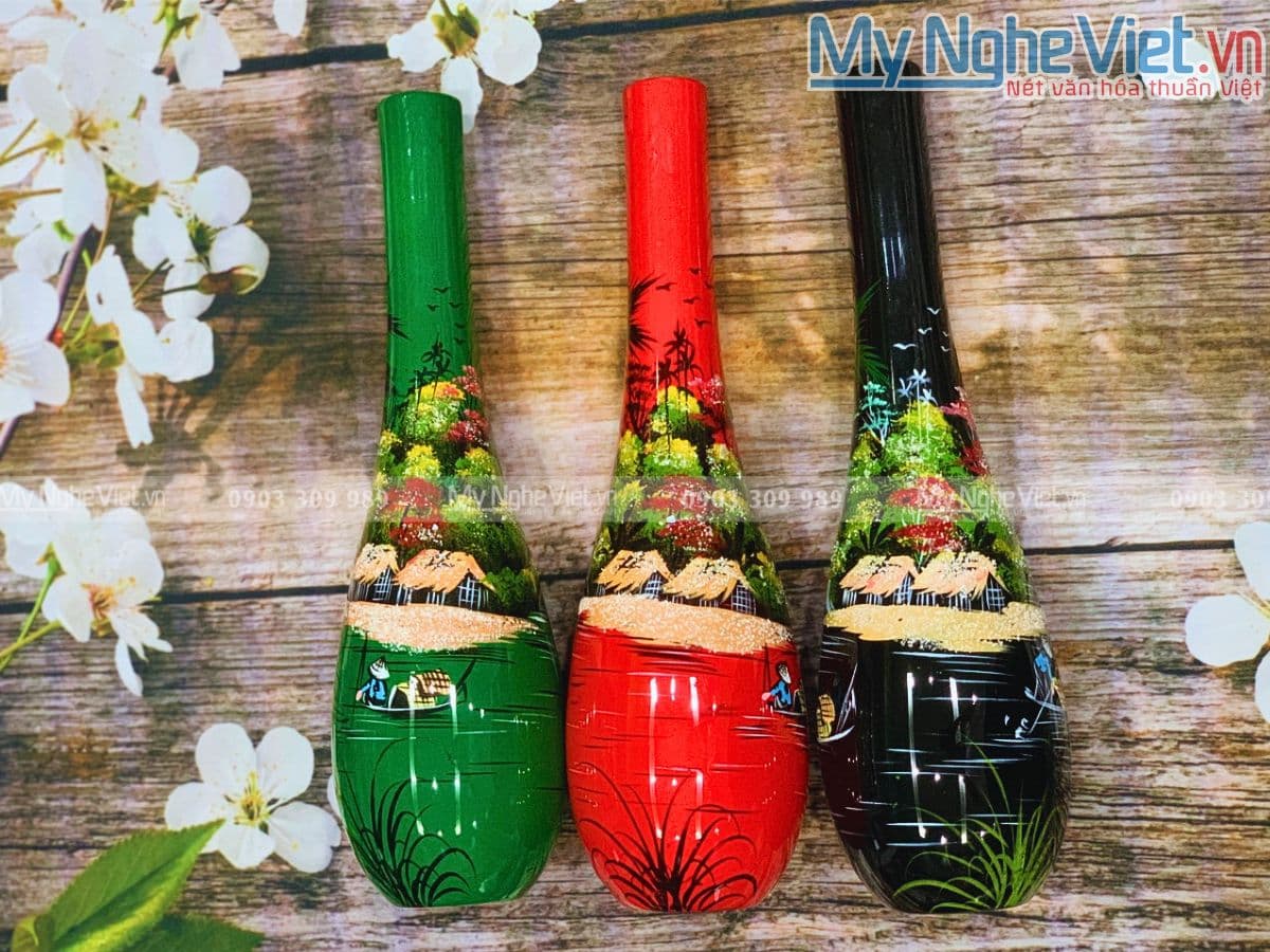 Exquisite Handcrafted Lacquer Vase | Traditional Vietnamese Countryside Scenes